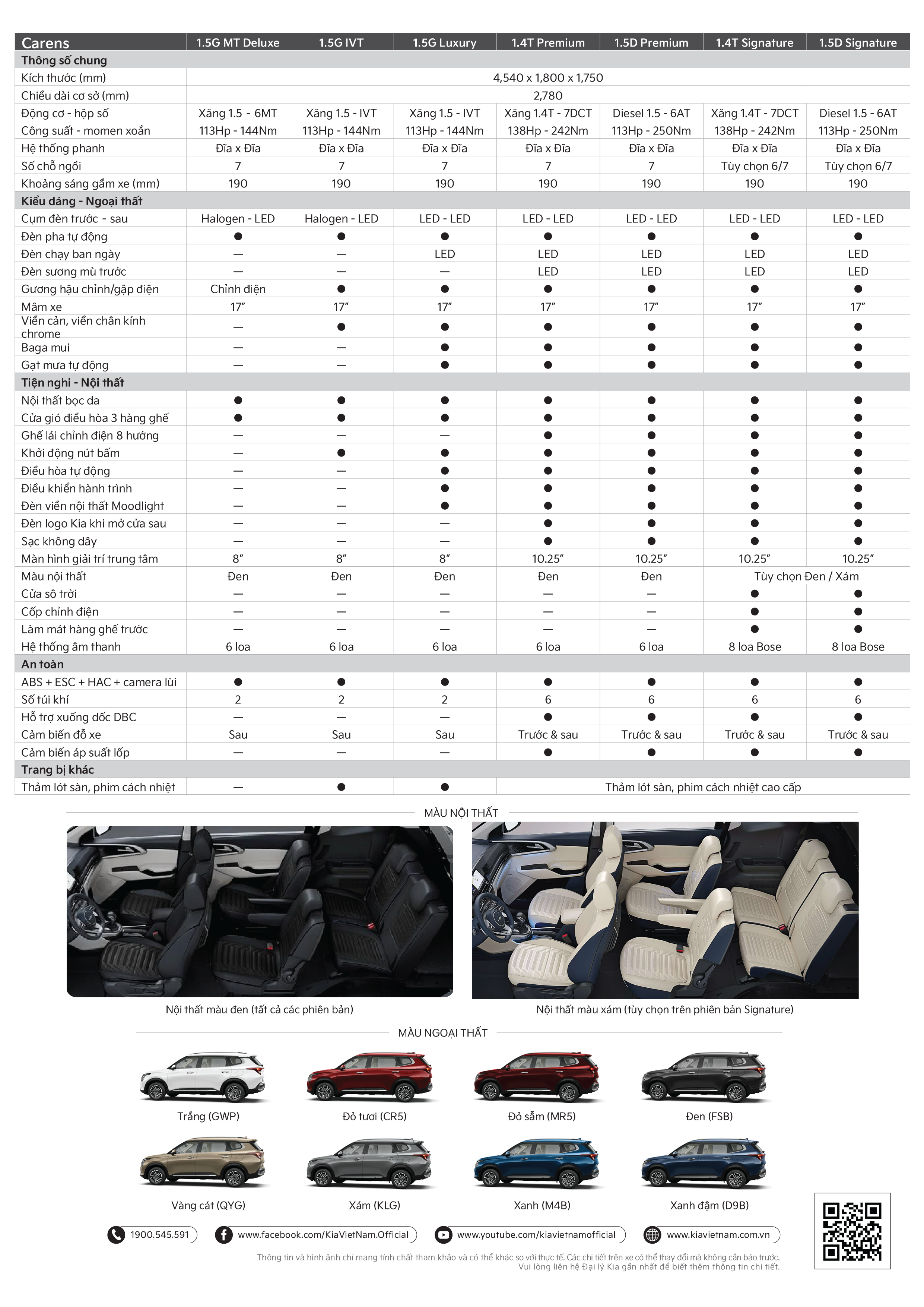 Tư vấn mua xeCác phiên bản và Giá bán của Kia Carens