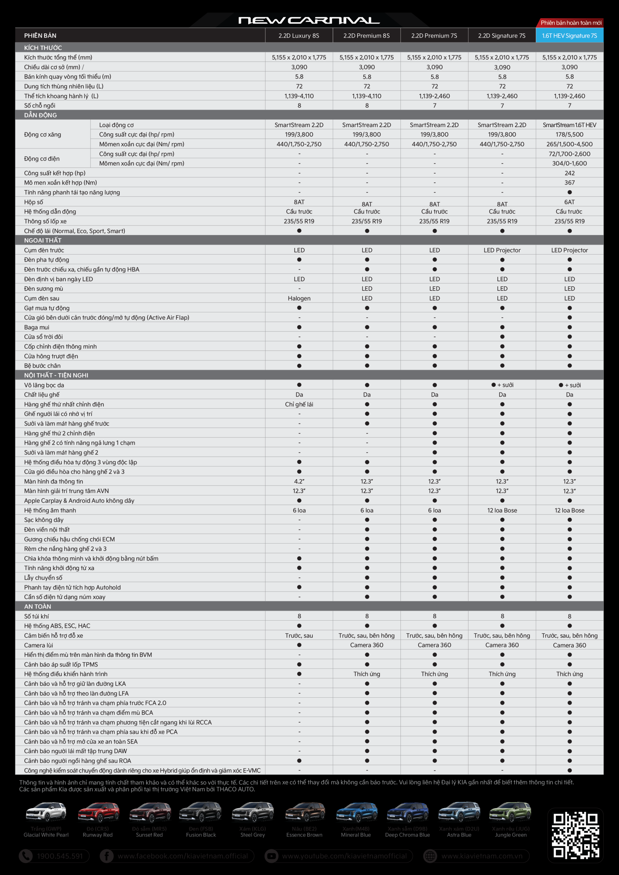 Tư vấn mua xeCác phiên bản và Giá bán của KIA NEW CARNIVAL HYBRID