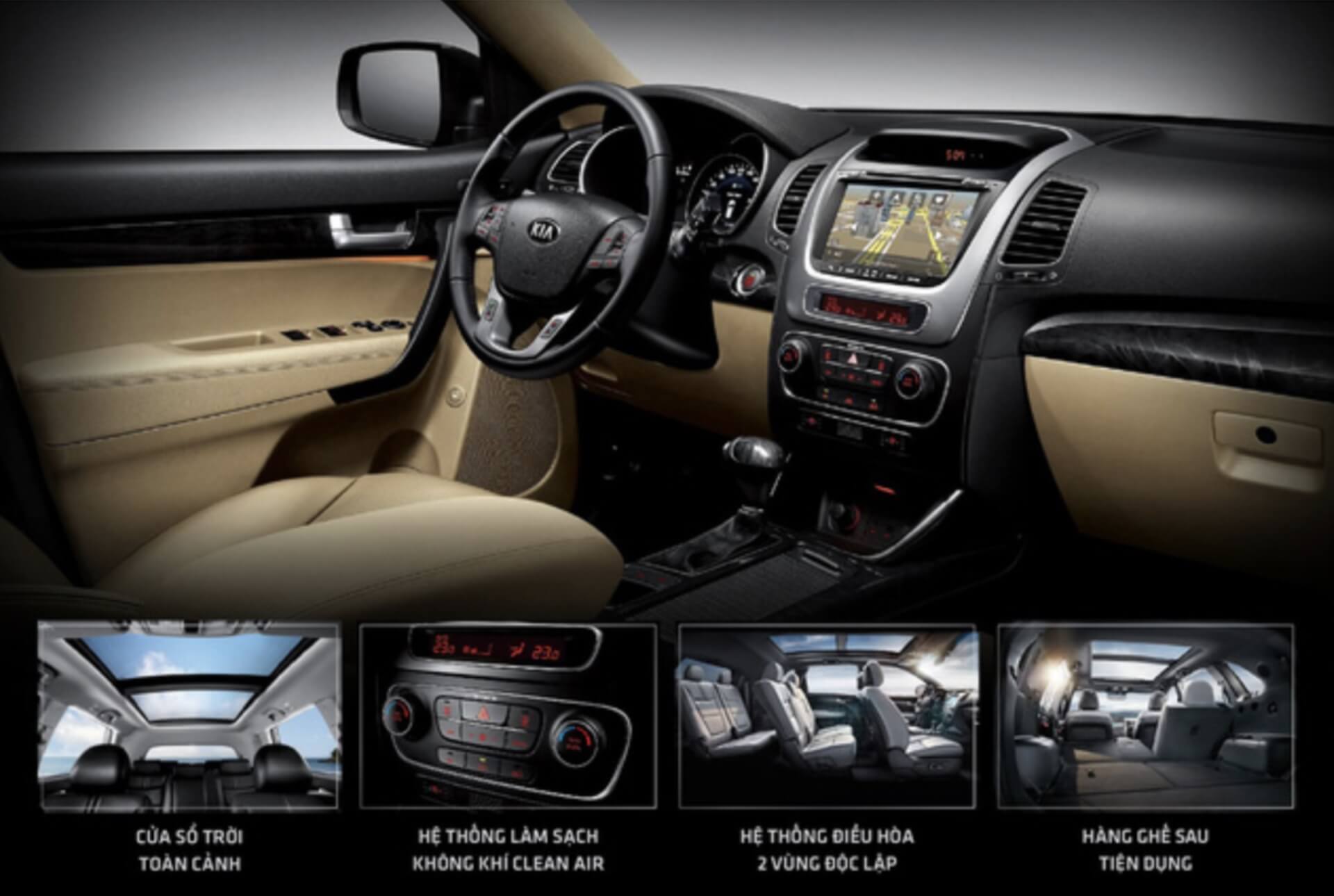 Kia Sorento là dòng xe được nhiều khách hàng Việt tin tưởng và đánh giá cao. Xe có 2 tuỳ chọn động cơ. Phiên bản động cơ xăng 2.4L cho công suất 174 mã lực và mô-men xoắn 227 Nm. Phiên bản động cơ diesel 2.2L có công suất cực đại 195 mã lực và mô-men xoắn 437 Nm. Tất cả biến thể đi kèm hộp số tự động 6 cấp và hệ dẫn động cầu trước.