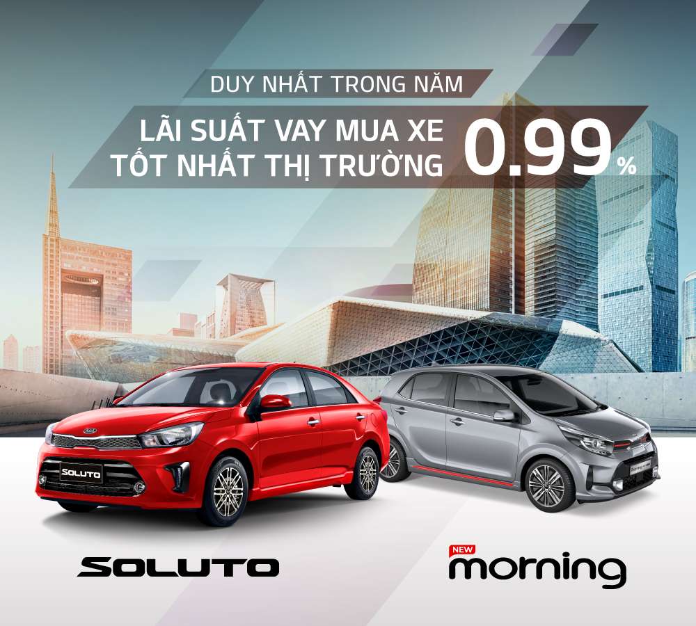 Từ ngày 18/10/2021 đến hết ngày 31/12/2021, để giúp khách hàng Việt dễ dàng chạm tay tới giấc mơ ô tô với số tiền ban đầu chỉ tương đương chi phí mua một chiếc xe máy, Kia Việt Nam triển khai chương trình vay mua xe với lãi suất chỉ từ 0,99% áp dụng riêng cho các mẫu xe Kia Morning, New Morning và Kia Soluto.