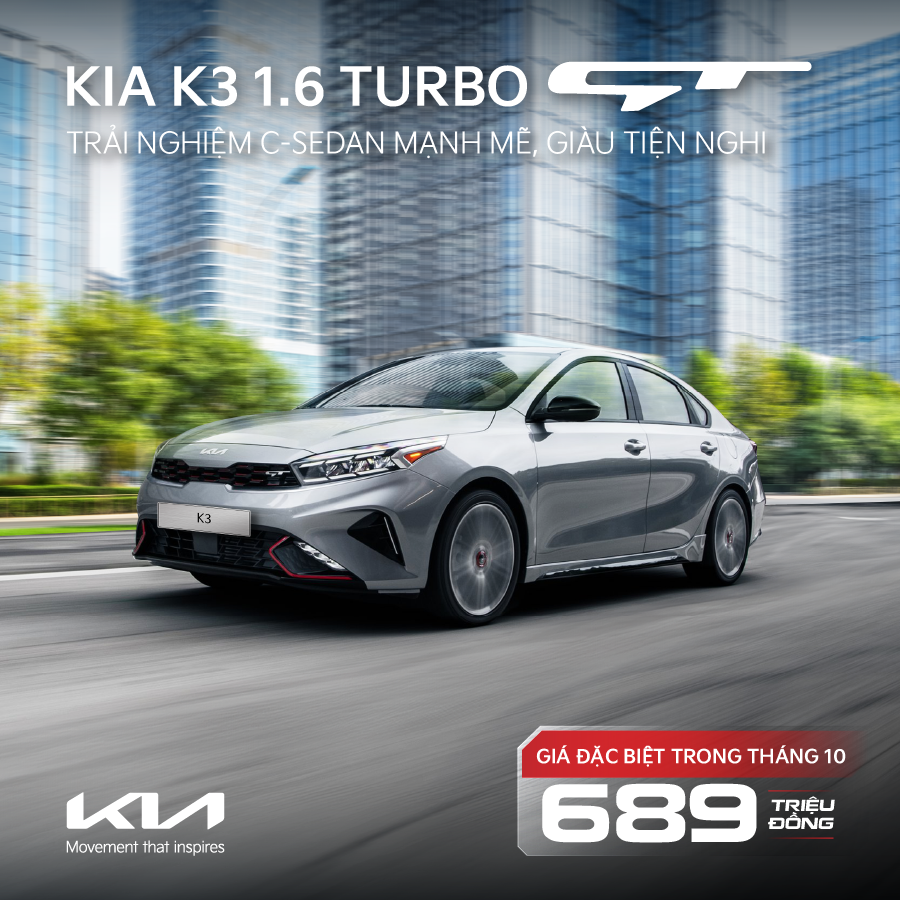 KIA K3 1.6 TURBO GT – TRẢI NGHIỆM C-SEDAN MẠNH MẼ, GIÀU TIỆN NGHI GIÁ CHỈ 689 TRIỆU ĐỒNG
