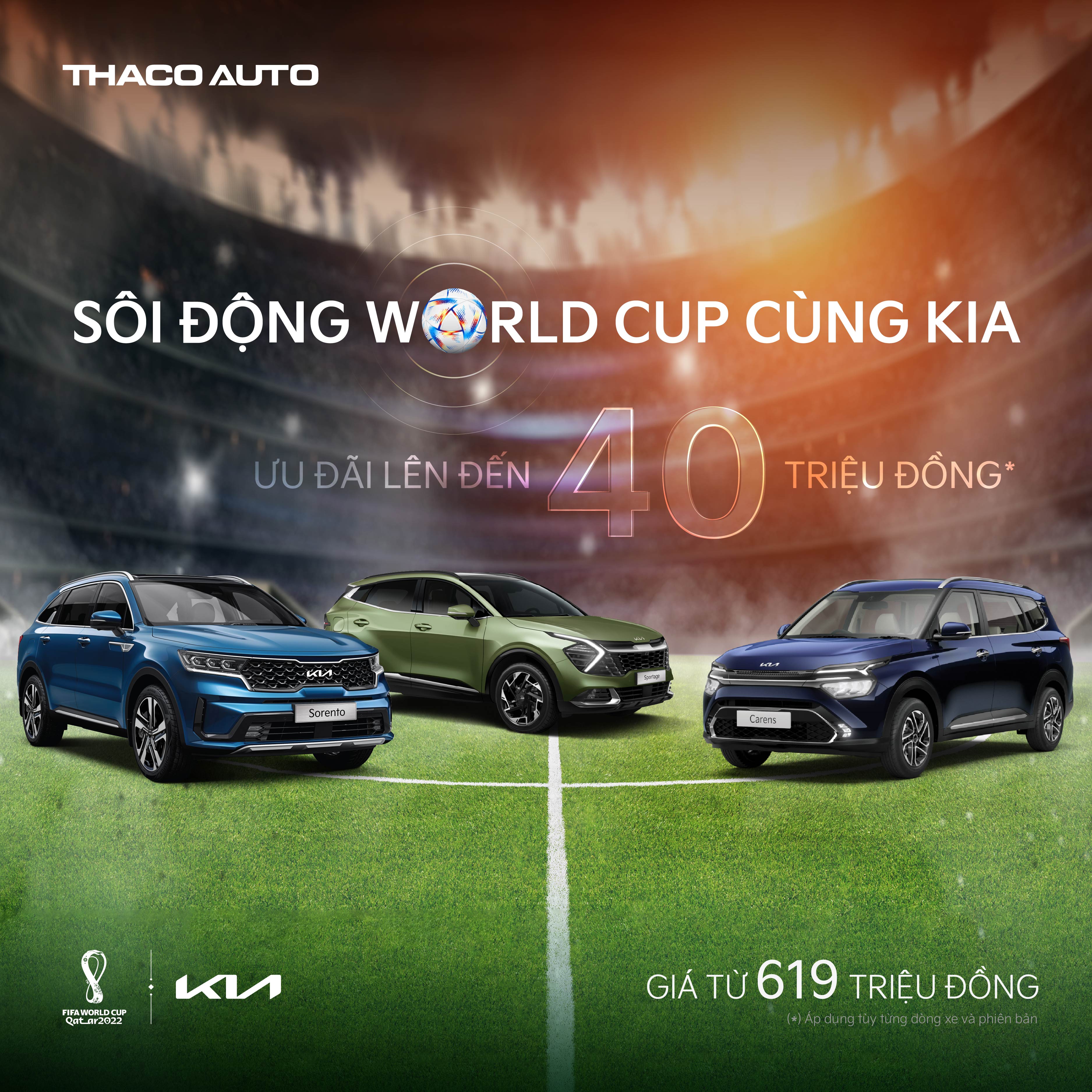 Từ ngày 06/12/2022, THACO AUTO triển khai chương trình ưu đãi cho thương hiệu Kia với mức ưu đãi cao nhất đến 40 triệu đồng. Các ưu đãi bao gồm: ưu đãi giá, bảo hiểm vật chất và quà tặng trang bị chính hãng. Ưu đãi áp dụng theo điều kiện và điều khoản từ thương hiệu.