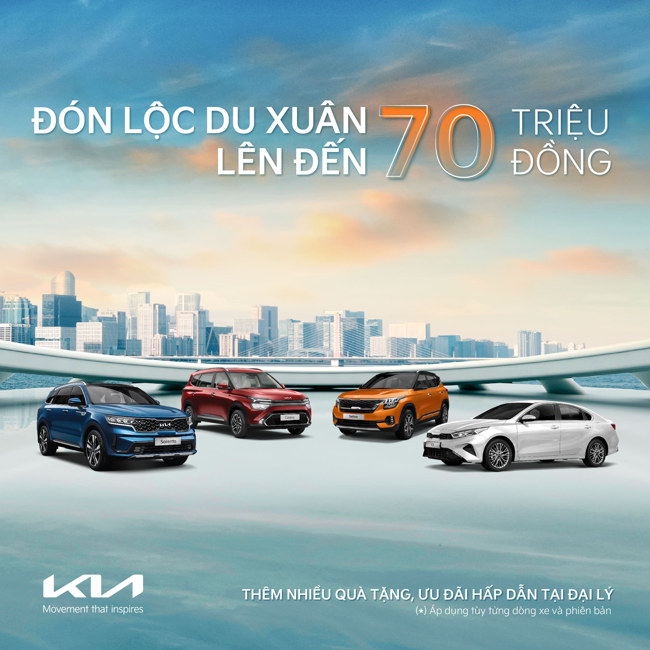 Từ ngày 01/02/2023, THACO AUTO triển khai chương trình ưu đãi lớn nhằm kích cầu cho hàng loạt các mẫu xe Kia với mức ưu đãi giá cao nhất lên đến 70 triệu đồng và thêm nhiều quà tặng, ưu đãi hấp dẫn tại các đại lý, mang đến tổng giá trị ưu đãi có thể xem là“khủng” nhất từ trước tới nay. Ưu đãi được áp dụng tùy theo dòng xe và phiên bản.